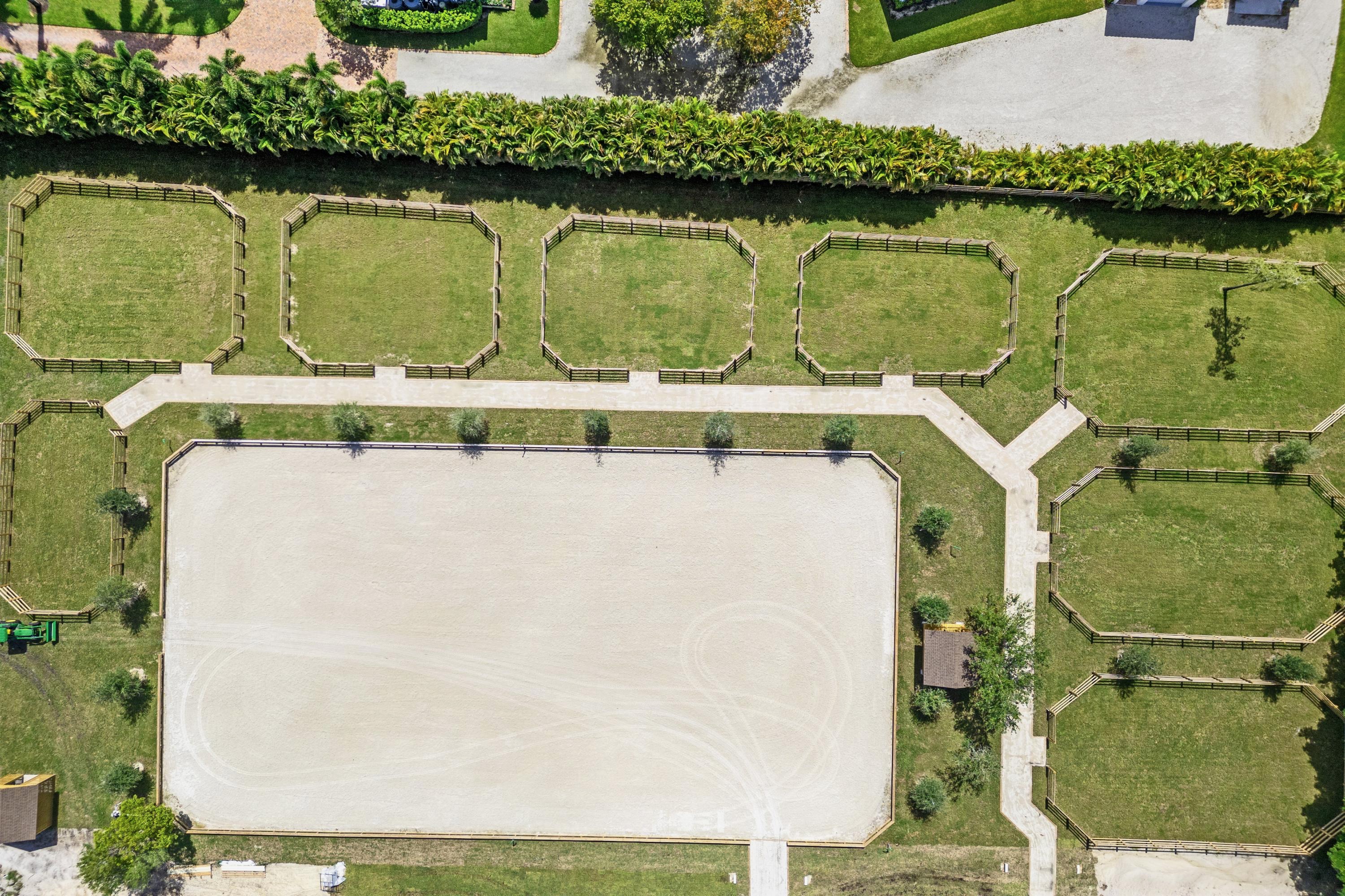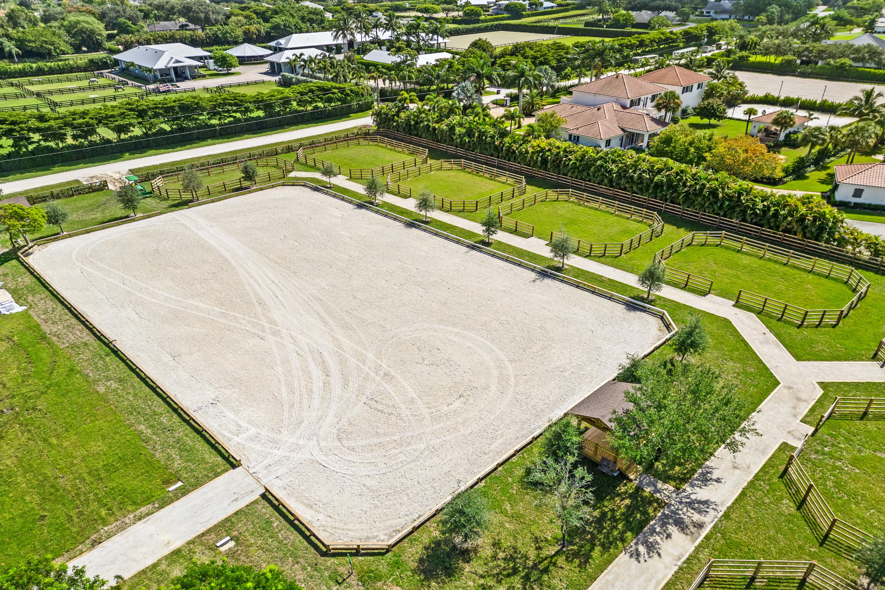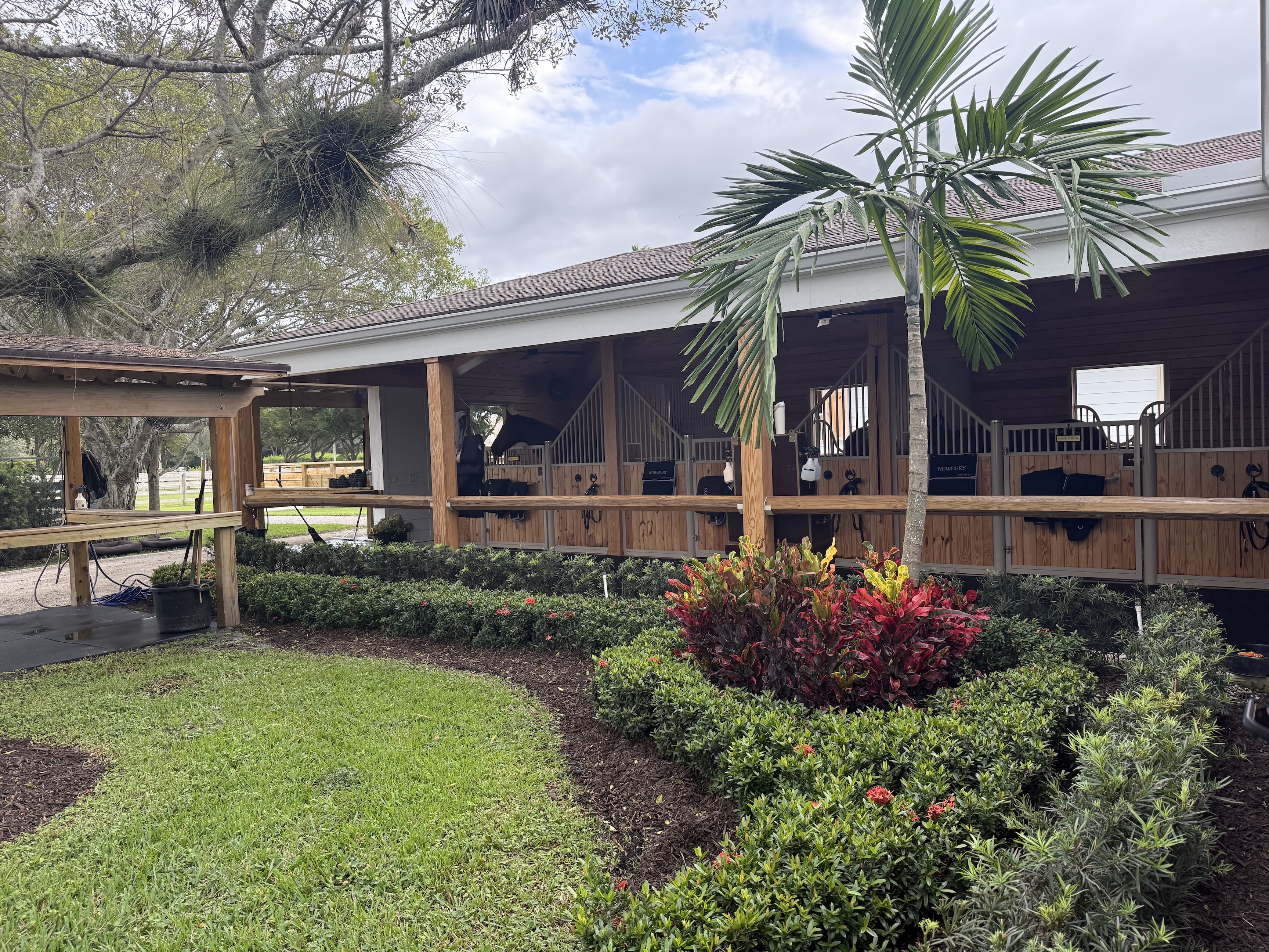 Our location in Wellington, FL is hacking distance to the Winter Equestrian Festival, has a large outdoor ring with irrigation system, ample grass turnout, large 14x14 matted stalls, grand prix field, and temperature controlled tack rooms.