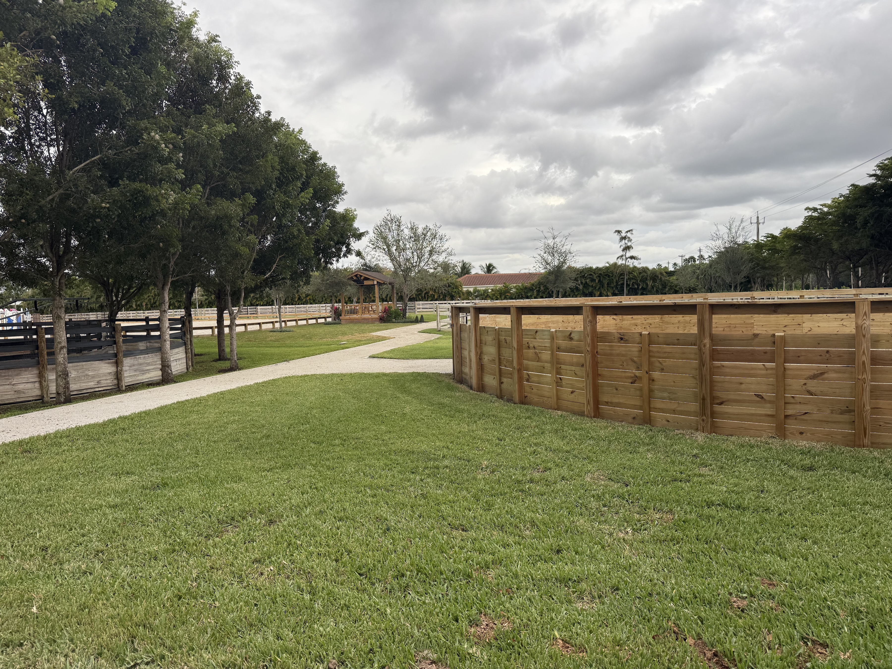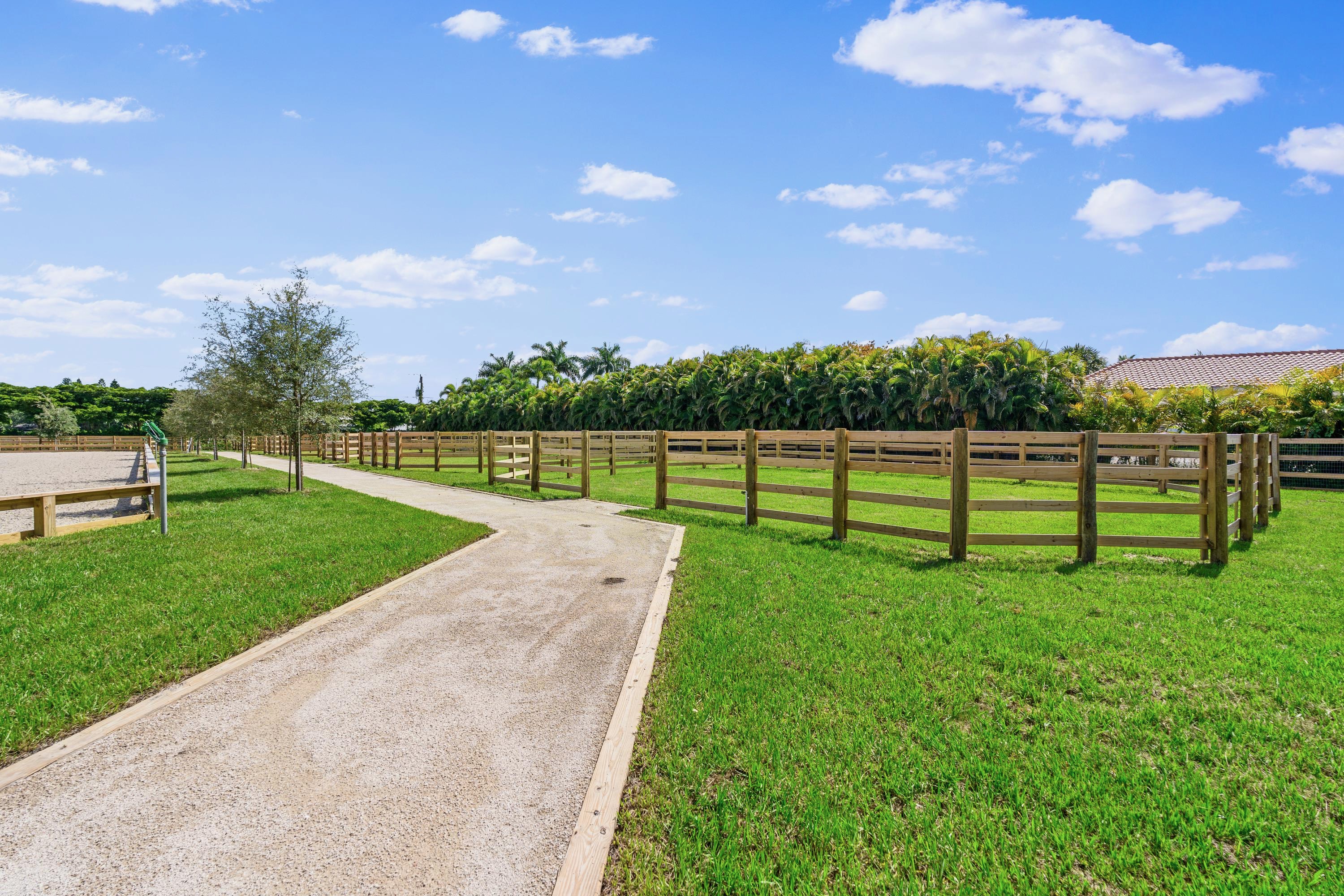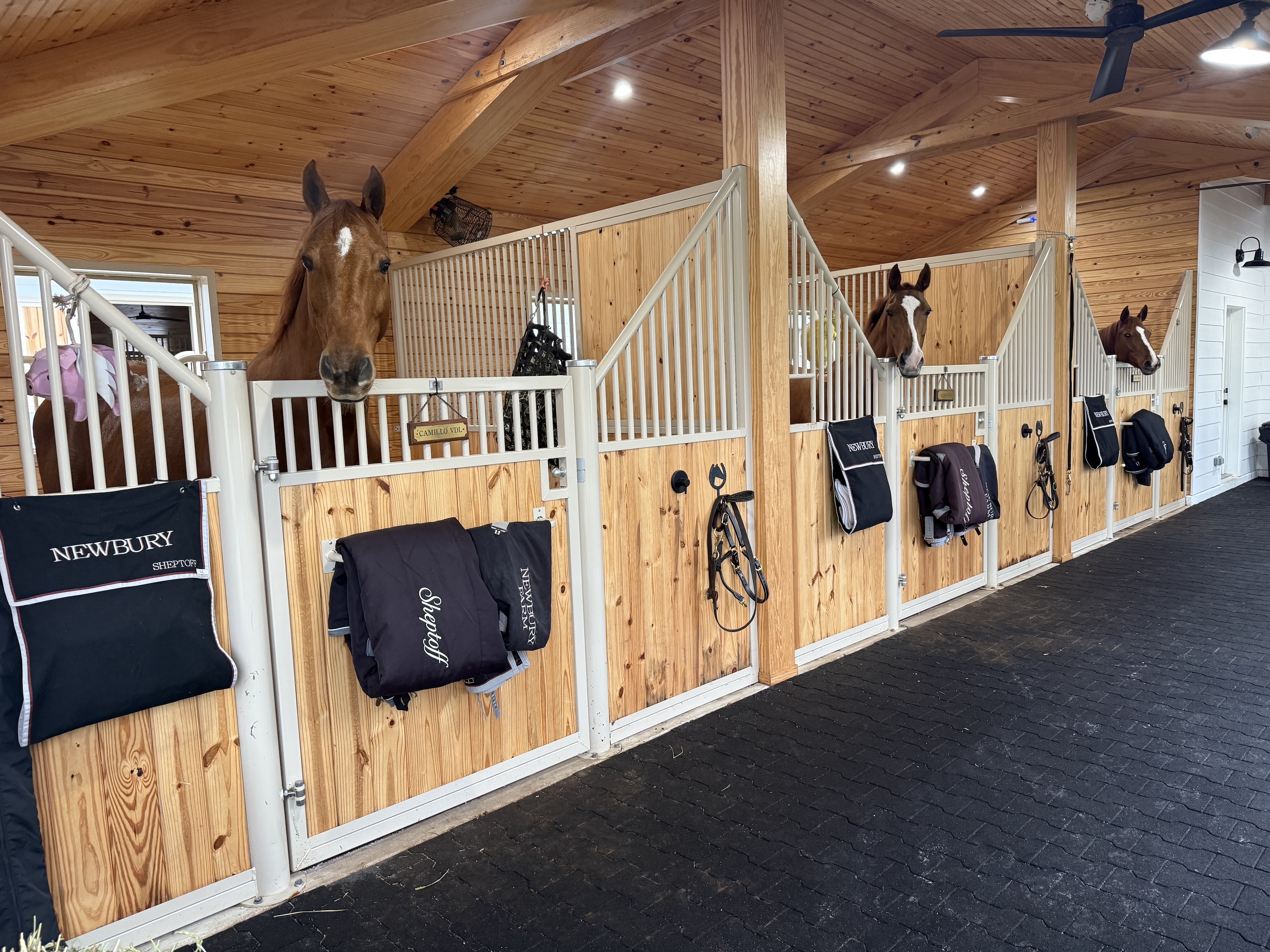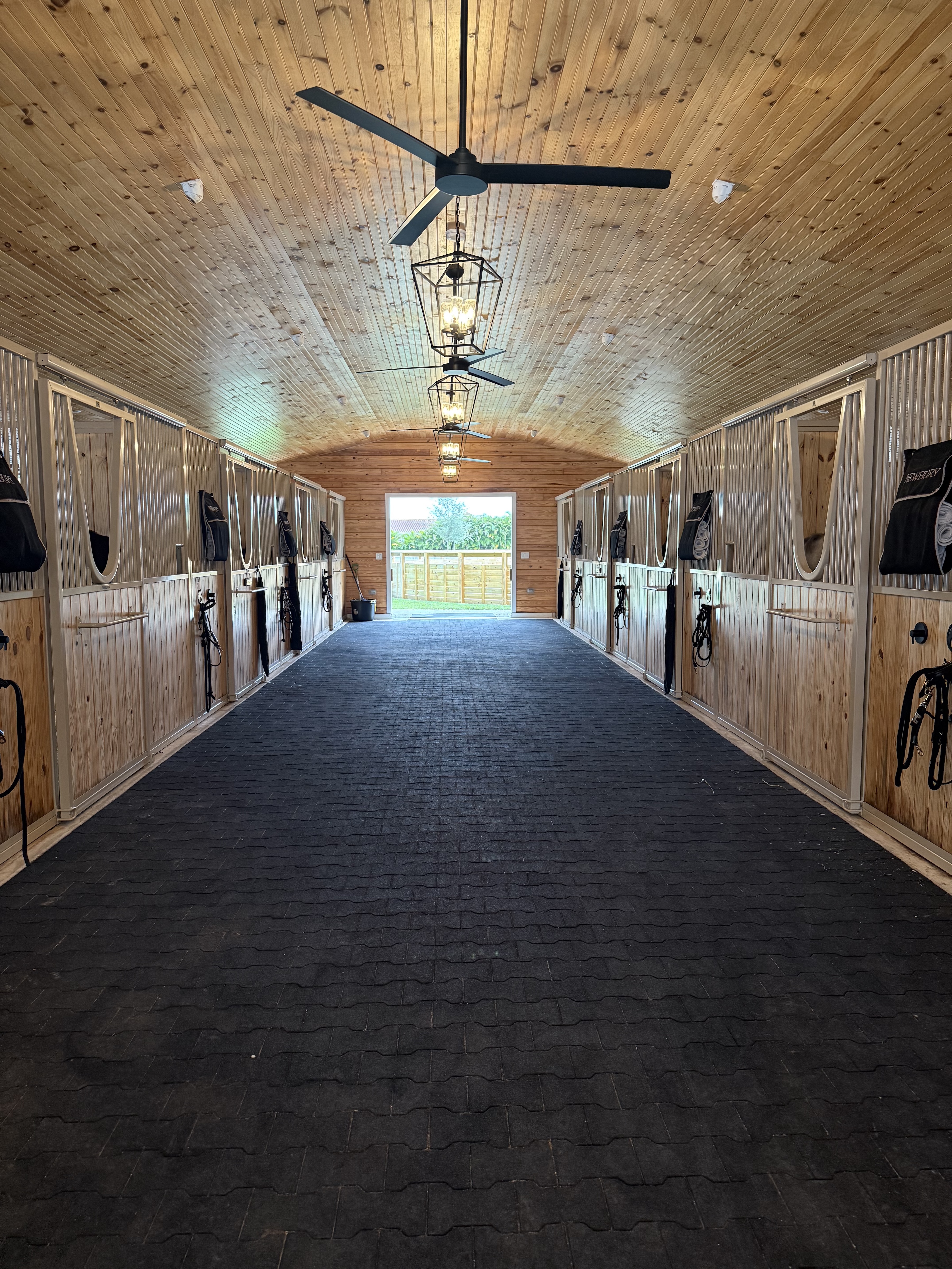 Our location in Wellington, FL is hacking distance to the Winter Equestrian Festival, has a large outdoor ring with irrigation system, ample grass turnout, large 14x14 matted stalls, grand prix field, and temperature controlled tack rooms.
